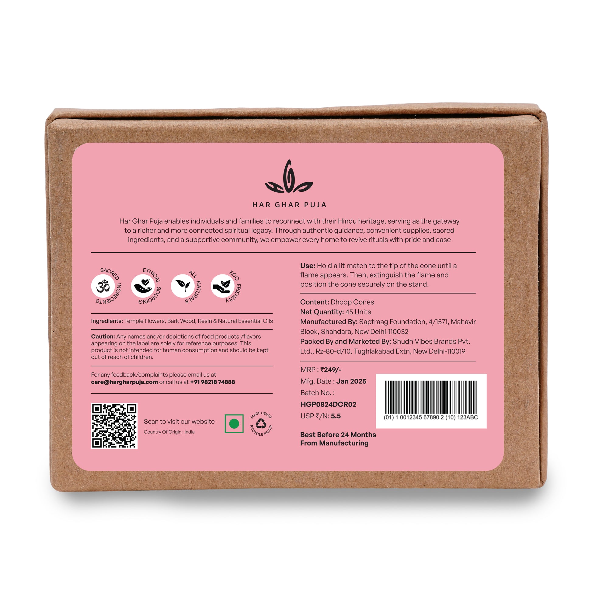 Packed By: Shudh Vibes Brands Pvt Ltd, Rz-80-D/10, Tughlakabad Extension, New Delhi