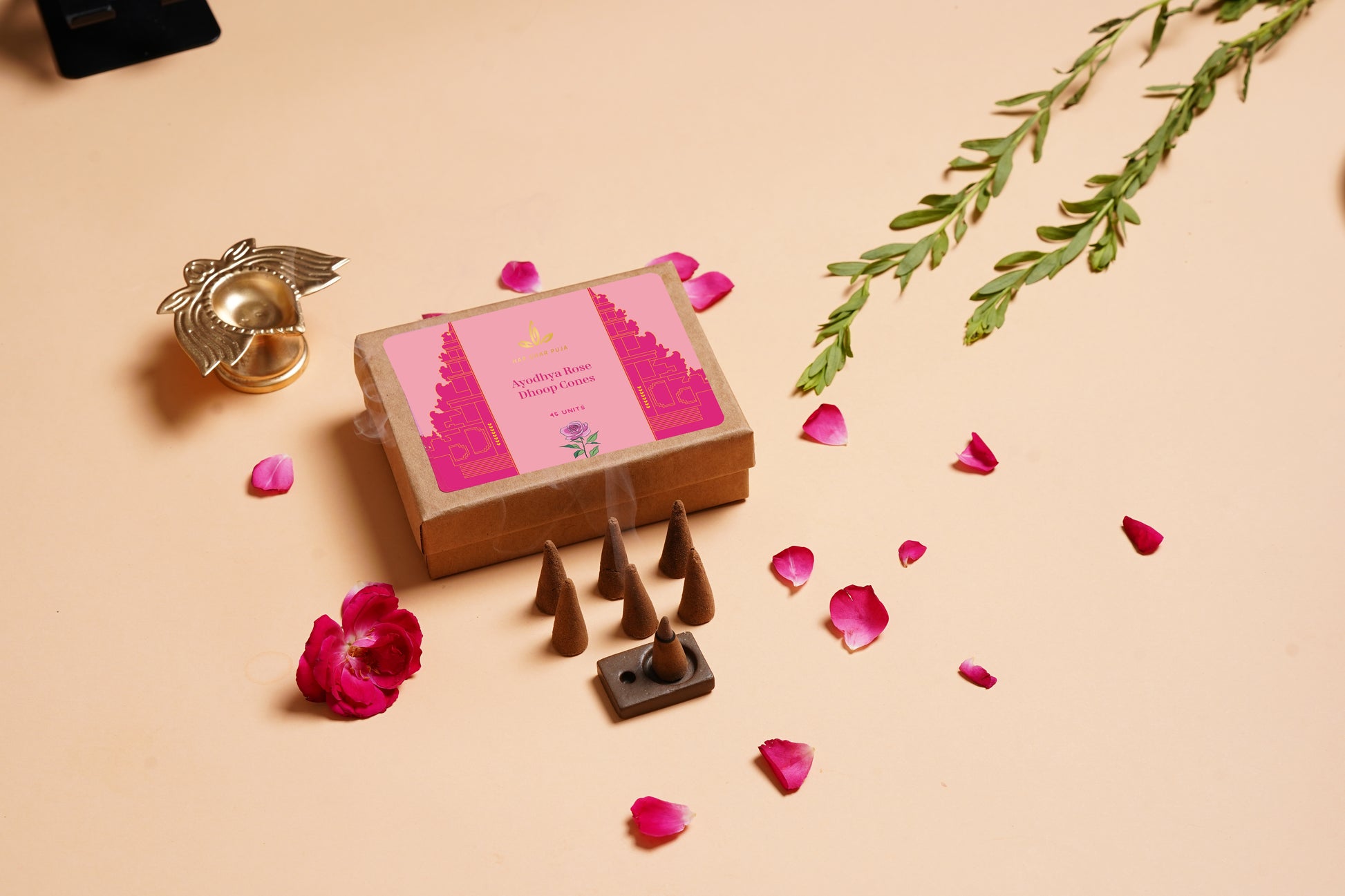 The Har Ghar Puja Ayodhya Rose Dhoop Cones have truly enhanced my spiritual practice. The rose fragrance is soothing and reminiscent of traditional rituals. Each cone burns steadily, making them easy to use. I would love a larger pack, as I find myself using them frequently. Great product overall!