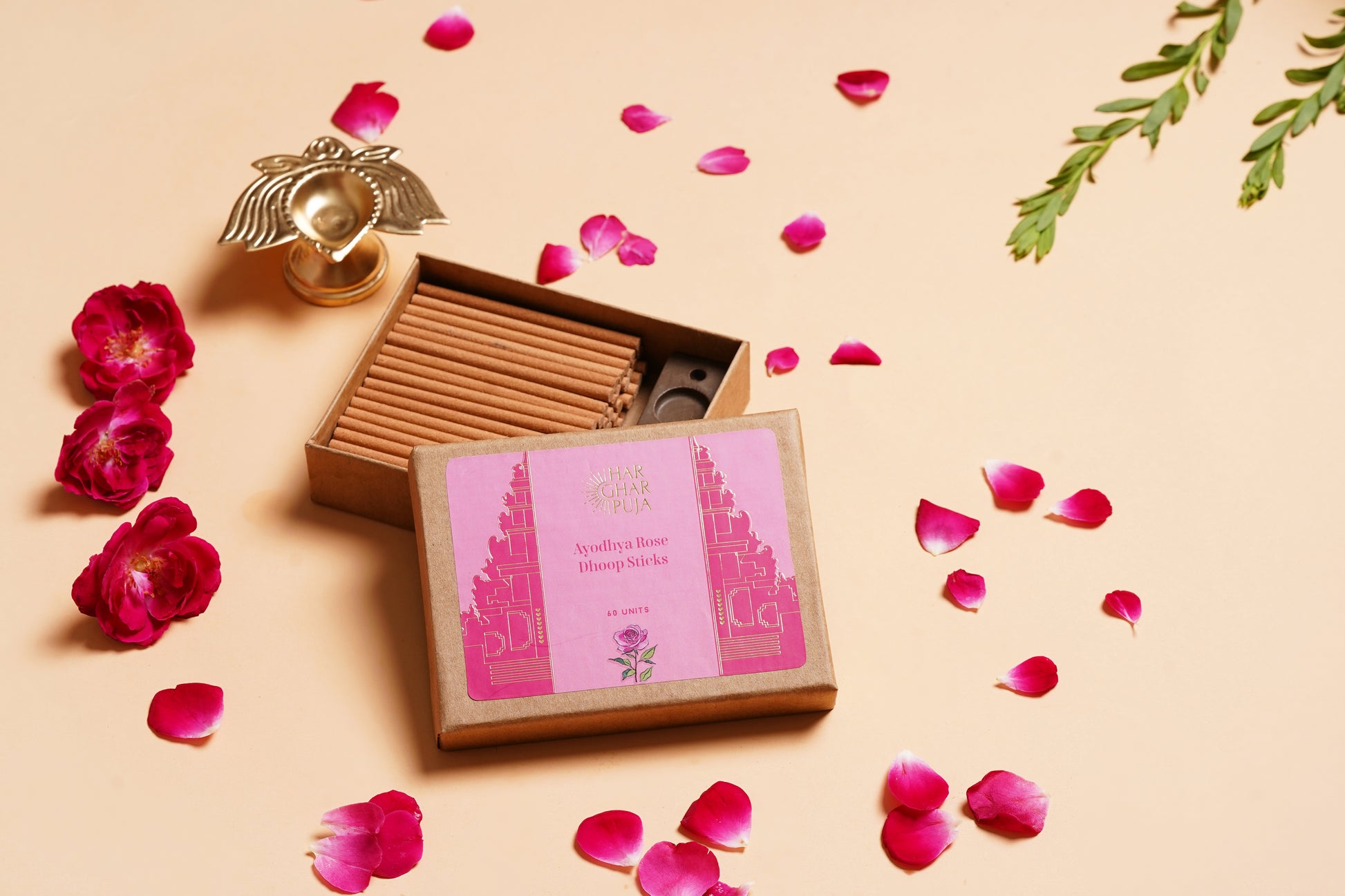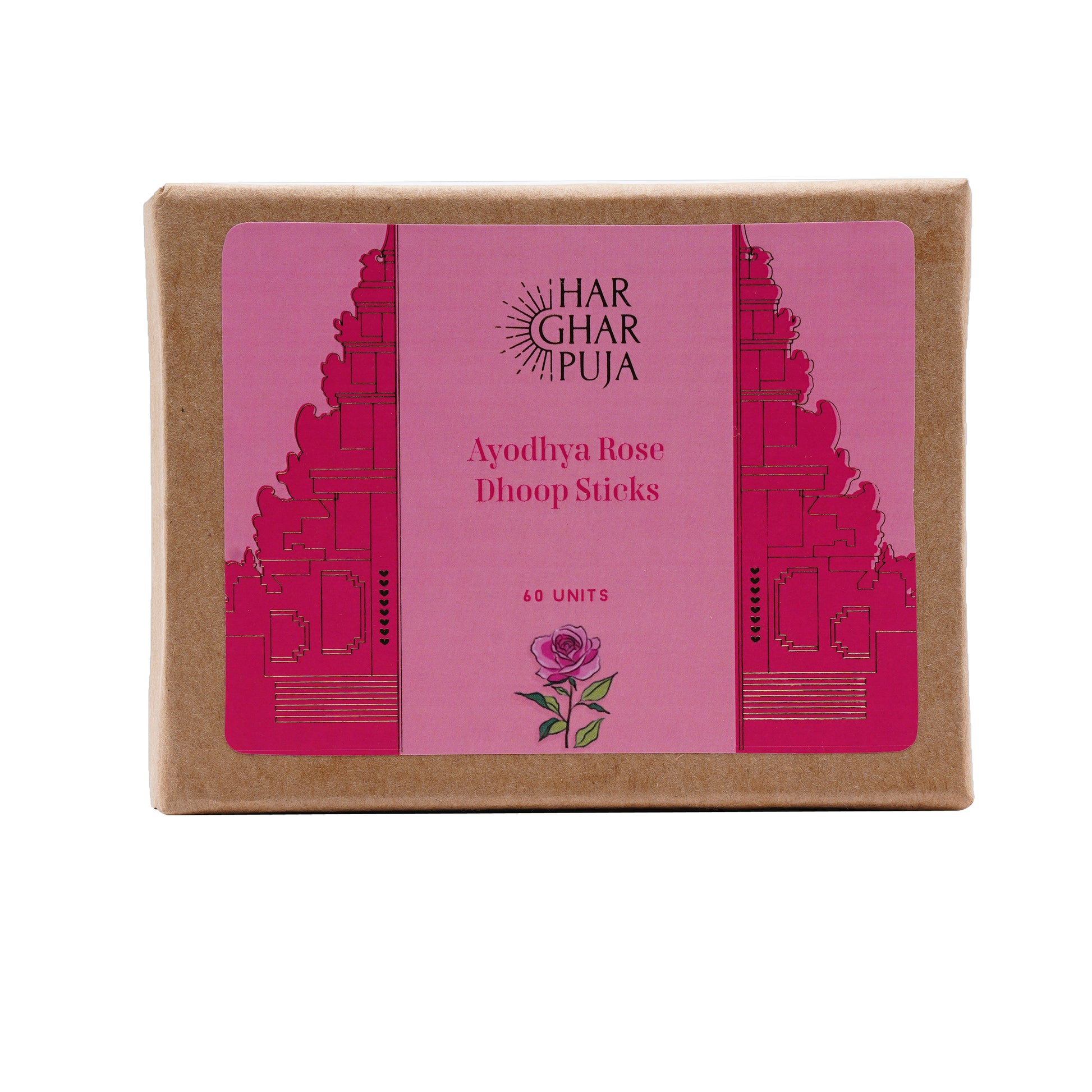 Rose Dhoop Sticks: Crafted from flowers offered at the Ram Mandir, these dhoop sticks bring the blessings of Lord Rama into your home. Ayodhya, the sacred birthplace of Lord Rama, is known for its deep spiritual significance. The soothing rose fragrance symbolizes love, devotion, and purity—qualities embodied by Lord Rama. Lighting these dhoop sticks fills your space with a divine, floral aroma, connecting you to the serenity and holiness of Ayodhya.